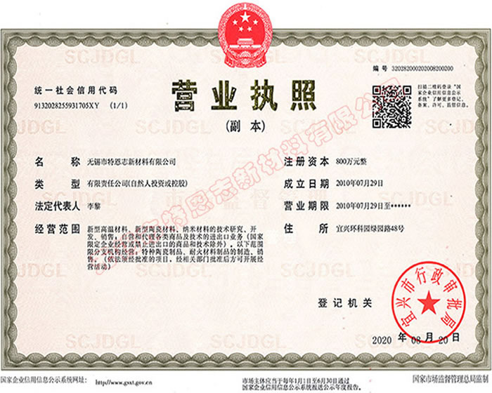 無錫市特恩志新材料有限公司座落在中國(guó)著名的耐火材料及工業(yè)陶瓷之鄉(xiāng)-----中國(guó)陶都江蘇宜興陶瓷產(chǎn)業(yè)園區(qū)。 |